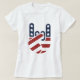 Universal rock hand symbol with the American flag stars and stripes colouring. Stencil style, t-shirts, sweats, cards, gifts.