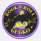 Rock & Roll Gecko round sticker with logo
