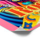 This vibrant psychedelic portrait of a boy surrounded by abstract rock shapes and swirling colours evokes a 1960's-1970's aesthetic. The text 'ROCK SOLID' appears at the bottom of the artwork and is a pun on the abstract rocks swirling around.