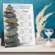 Customise the Natural Rock Stack Cairn Spa and Salon Service Menu Tabletop Plaque with Easel to let your clients know what you offer and the prices. This custom price list template features a nature photograph of a pile of rocks on a sand beach with the blue ocean in the distance. Perfect idea or inspo for a massage therapist, ayurveda reiki healing and wellness practitioner, or natural aesthetician business promotion.