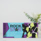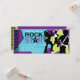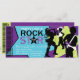 Party like a rock star! Blue and lime green stars with kids singing and playing guitar: hip and cool rock star birthday party invites.