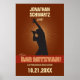 He’s the rock star. Make his Bar Mitzvah a show to remember. This poster sets the tone for the party. It’s great as a decoration on its own, hung around the room. Or use it as an alternative to a sign-in book: have a silver/metallic marker nearby and encourage people to write in their own good wishes! Smaller versions make great keepsakes and party favours. This poster puts your rock star in the spotlight. His name is on the marquee and he’s live! A silhouette – representing your son – holds a microphone with his hand raised triumphantly in the air. You can customise virtually all of the printed information with your son’s name and the event date…just fill in the fields!