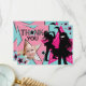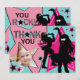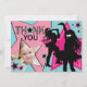 Party like a rock star! Pink stars over aqua blue background with girl singing and dancing: hip and sassy rock star thank you card.