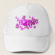 Rock Star on White Trucker's Hat, Mesh Hat- Desc. The word "ROCK" in pink under "STAR" on a white mesh trucker's hat. Girl or Guy's hat. Pink paint splatter.