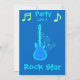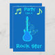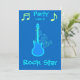Rock Star Party Invitations with a blue guitar and blue background. Customise with your party details. delightful-doodles