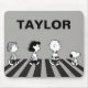 This Peanuts artwork features Snoopy taking a nap created in a rock music design style.