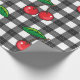 Rockabilly 1950s Cherries on Black White Plaid Wrapping Paper