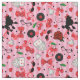 Funky rockabilly patterned fabric with a vintage 1950s design of black poodles, dice, cherries and sunglasses over pink musical notes and stripes