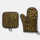 Rockabilly Gold Black Leopard Print Oven Mitt & Pot Holder Set