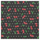 Rockabilly 50s themed black fabric printed with cute red cherries and white polka dots