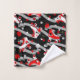 Rockabilly retro roller skating derby inspired pattern bath towels. Cherries, roses, skates and dice on a gray ribbon and delicate polka dot background.