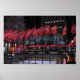 Features an original colour photograph of red flags flying in the wind at the Rockefeller Centre ice skating rink. Photographed in New York City.