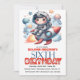 Blast off into a fun-filled celebration with this adorable space-themed 6th birthday invitation featuring a cheerful young astronaut riding a rocket through the stars and planets. Designed with bright colours and playful outer space elements, this invitation sets the perfect tone for an exciting kids birthday party adventure that little explorers will love.