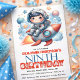 Blast off into an out-of-this-world celebration with this adorable space-themed 9th birthday invitation featuring a charming young astronaut riding a rocket through the stars and planets. Perfect for kids who love space adventures, rockets, and exploring the galaxy, this fun and imaginative design sets the tone for an exciting birthday party filled with wonder and discovery.