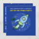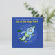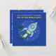 Illustration of cute rocket in outer space, surrounded by stars and a small green spaceship. Also matches the: