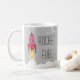 Rocket Fuel Coffee Mug - Pink Retro Cartoon Rocket Ship with Vintage Style Typography Funny Quote. This cute and humourous design has a vintage hot pink retro rocketship blasting off into outer space. Perfect geek humour gift for caffeine addict, coffee lover or space cadet. Cartoon design is great for the young at heart, geek girl, or anyone interested in space ships, space exploration, aerospace science, aeronautical engineering, NASA, scifi, robots, astronauts, or other cosmic things. If this is for a gift, matching wrapping paper, ribbon, stickers, bags, boxes, etc. can be found under Craft Supplies in the list of Departments. Shoot for the moon. I love you to the moon and back. Girl power, empowering women, female empowerment, feminism, feminist gift for girls, geek girl.