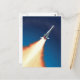 Digital illustration of a rocket launch. The rocket is based on the Ariane.
