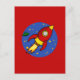 Illustration of cute rocket in outer space, surrounded by stars and a small green spaceship. Also matches the: