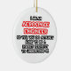 I was extremely happy to find a tree ornament for my Occupational Therapist daughter. (I bought one a few years ago for my Paramedic son) & prior to seeing this I was trying to work out how I could create something similar for her. Unfortunately my first order was deemed lost in the mail which meant it didn't arrive in time to give my daughter when she finished Uni. However the Zazzle Support team were fabulous & organised a replacement quite quickly. My daughter is very happy. Thank you. Nice ornament, love the colours