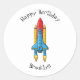 Rocket ship cartoon illustration classic round sticker