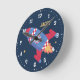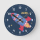 Rocket Ship Chequered, Outer Space, Kids Room Round Clock