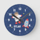 Rocket Ship Outer Space Little Astronaut Boys Room Round Clock