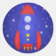 A blue and red rocket ship soars through space, in this young space lovers design!