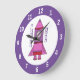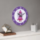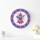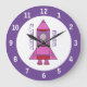 Astronaut and Rocket Space Wall Clock with Name for Girls / Space theme. This wall clock has a rocket ship in pink and purple colours. Personalise the clock with a child`s name - you can change or erase any text. It`s a cute gift idea for a birthday for girls or just decor for children`s room. A unique present for daughter, granddaughter or niece.