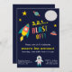 Cute and colourful outer space themed birthday party invitation. Rocket ship, moon, stars, astronaut, planet and mysterious ship! Multiple template text lines for your information.