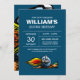 I chose the larger postcard sized one, as the font would be large for older eyes, and customised it keeping the Rail Ticket theme on the front, with venue address/date/time of party, and on the back I added another steam train and various 80 speed limit/rail signages. The trick is not to overdo it or it looks too busy. I also added at one end of the front side, a word of thanks from the birthday boy.
