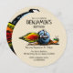 The Rocket Snail on a round Birthday Party Invitation for kids.