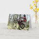 A birthday card for motorbike trial fans and competitors with a posterized action photo of a motorcycle trials rider jumping from rock to rock.