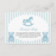 This design features a elegant baby shower theme with watercolour rocking horse and preppy teddy bear on striped background in pastel blue and white colours. This product can be easily personalised. If you need help with the customisation of the product or need matching products kindly please contact me via Zazzle.