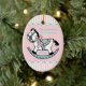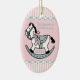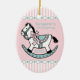 Adorable pink and blue rocking horse with big pink bow personalised ornament. Perfect for a baby shower as a gift tag or baby's first Christmas tree. Coordinated customisable baby shower and birthday invitations, postage stamps, keepsake binders, tote bags, magnets, newsletter stationery, envelopes, mugs, thank you notes and more. PinkInkArt original!