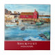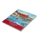Designed based on acrylic painting of Rockport Harbour in Massachusetts by Farida Greenfield. A lovely capture of Rockport Harbour, with its colourful buildings, view of the pier and boats docking on the harbour. Rockport is a seaside town in Essex County, Massachusetts, United States. The design has dark red circle on the outer side and texts that can be personalised on the top and lower side.