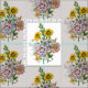 Old-fashioned botanical illustration of rockroses in pink and yellow