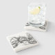 The coasters are gorgeous, a quality feel and heavy weight. They look like a precious archeological find. A rustic stone juxtaposed with a modern floral black and white print. I like the way the print goes slightly imperfect on the cut stone edges giving them a kind-of natural beauty.
