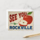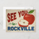 A charming Rockville Maryland vintage travel postcard featuring a lovely red apple, along with fun retro style text that says, "See you in Rockville"