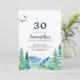 This Rocky Mountain 30th birthday invitation is perfect for an outdoor birthday party. The design features a blue and green painted wilderness landscape with watercolor pine trees, birds and mountains.