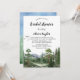 Celebrate the bride-to-be with this stunning outdoor-inspired invitation. Featuring a beautifully painted watercolor landscape of towering pine trees, soaring birds, and majestic blue and green mountain scenery, it sets the perfect tone for a nature-filled bridal shower.