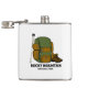 The flask itself is fine. It’s a cheap flask, obviously bought in bulk, however am prepared to overlook that. Given that it is a personalized item, I would have liked to have seen gift boxing instead of the generic packaging. Terrible printing, and/or quality. It’s a cheap, tacky vinyl. It is not cut straight and is also applied in a way that it is overhanging the bottom, causing the glue to catch on items and it will eventually roll and tear, damaging the wrap.
