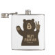 The flask itself is fine. It’s a cheap flask, obviously bought in bulk, however am prepared to overlook that. Given that it is a personalized item, I would have liked to have seen gift boxing instead of the generic packaging. Terrible printing, and/or quality. It’s a cheap, tacky vinyl. It is not cut straight and is also applied in a way that it is overhanging the bottom, causing the glue to catch on items and it will eventually roll and tear, damaging the wrap.