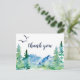 This Rocky Mountain thank you postcard is perfect for an outdoor wedding. The design features a blue and green painted wilderness landscape with watercolor pine trees, birds and mountains. Personalise the back of the postcard with your names, your return address, and a thank you message. Alternatively, leave the thank you message template section blank to hand write a thoughtful personalised note on each card after they arrive. These cards can be used for a wedding, bridal shower, or any special event.
