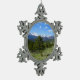 Rocky Mountain View Scenic Landscape Snowflake Pewter Christmas Ornament