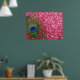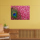Fantastic photo of a perfect peacock feather with a rocky and glittery pink background. Perfect gift for the girl in your life that loves pink