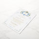 The invitation also features an ornate frame design with hand-drawn cherubs and blue florals, adding a touch of sophistication and grandeur. The frame elegantly encases your wedding details, ensuring they are presented with clarity and style.