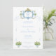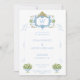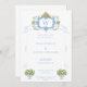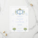 At the heart of the invitation lies a hand-painted monogram crest, inspired by the ornate beauty of the Rococo era. The intricate design features a harmonious blend of blues and greens, interwoven with delicate bows and floral elements. This crest serves as a stunning centerpiece, symbolizing the unity and love shared by the couple.