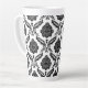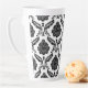 A vintage style decorative damask surface pattern influenced by rococo classical design in black detail on a white background.