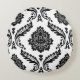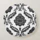 Rococo Damask Lg Pattern Black on White Round Cushion