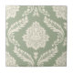 Rococo Damask Lg Pattern Cream on Green Ceramic Tile